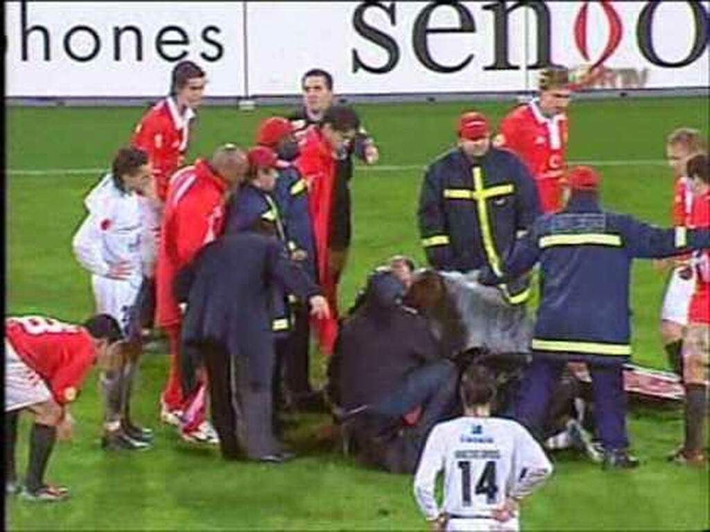 Μετά από λίγο πέφτει στο γρασίδι και προκαλώντας πανικό στους συμπαίκτες του αλλά και σε όλο τον κόσμο. Ο θάνατός του διαπιστώθηκε όταν προσκομίστηκε στο νοσοκομείο.