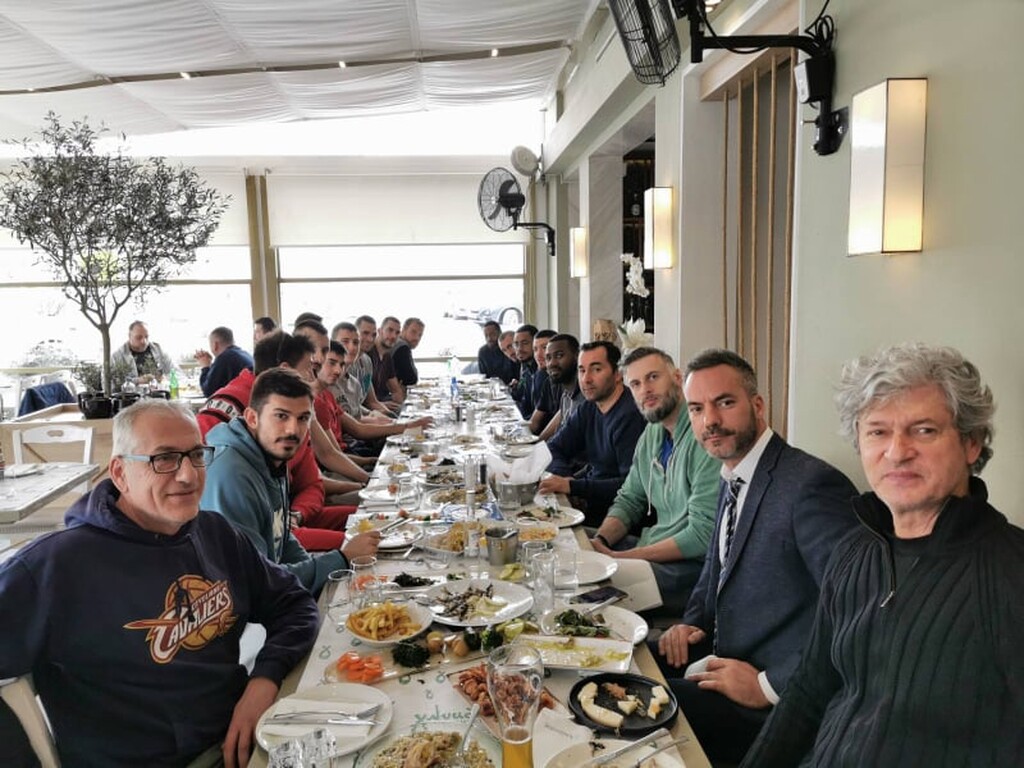 Με το τέλος το τέλος της προπόνησης οι διοικούντες την ΚΑΕ παρέθεσαν γεύμα στο αγωνιστικό τμήμα, θέλοντας να ενισχύσουν ακόμη περισσότερο το κλίμα ενότητας που υφίσταται στην ομάδα, μετά την τελευταία εντός έδρας νίκη με τον Ηφαιστο Λήμνου. Παρόντες ήταν άπαντες, απολαμβάνοντας στιγμές χαλάρωσης εν όψει της δύσκολης αγωνιστικής συνέχειας που περιμένει τον Άρη ως το τέλος της κανονικής διάρκειας της σεζόν.
