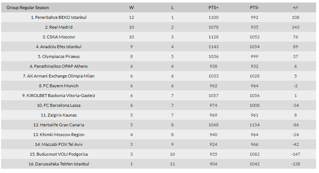 Euroleague: Η βαθμολογία μετά το διπλό του Ολυμπιακού στη Βαρκελώνη (photo)