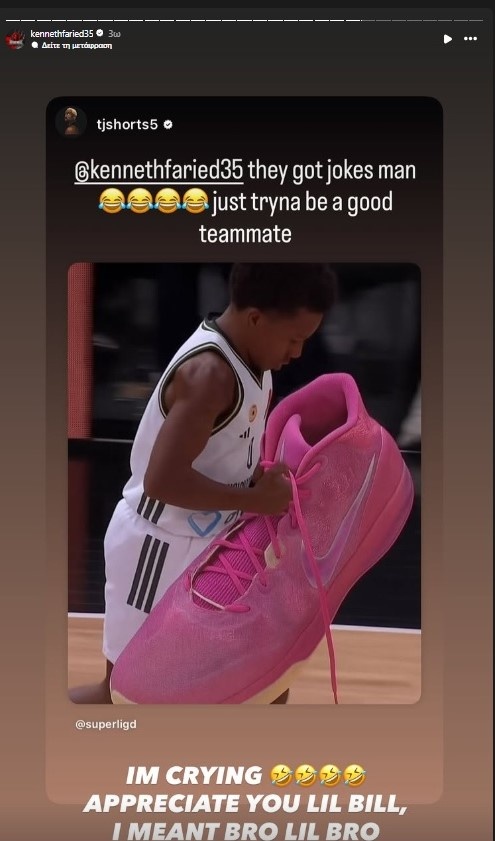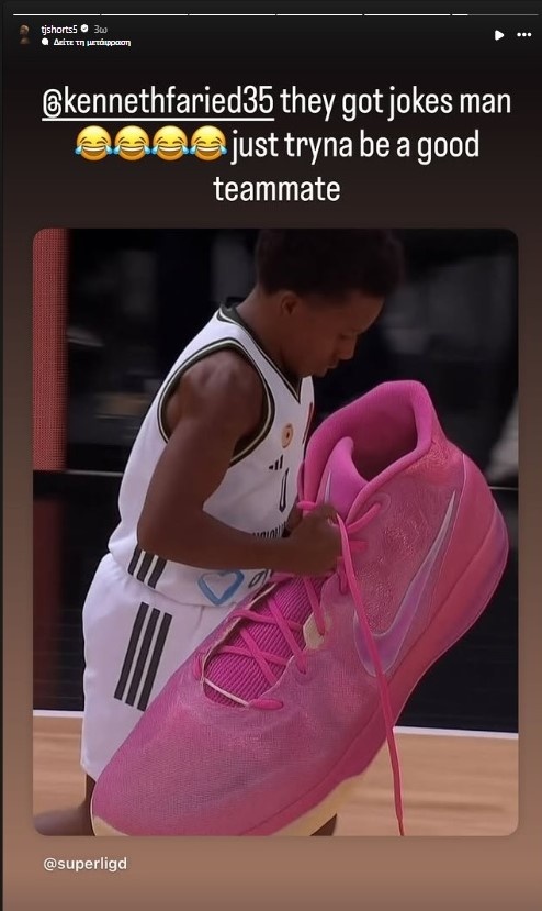 Το κλίμα στα αποδυτήρια είναι εξαιρετικό πάντως, κάτι που φάνηκε ακόμη και από το καλαμπούρι που έκαναν μεταξύ τους οι παίκτες. Στα social media ο Τι Τζέι Σορτς ανέβασε τη φωτογραφία που έφτιαξαν φίλαθλοι, μεγεθύνοντας το παπούτσι του Φαρίντ, τη στιγμή που του το πήγαινε ο Αμερικανός γκαρντ.