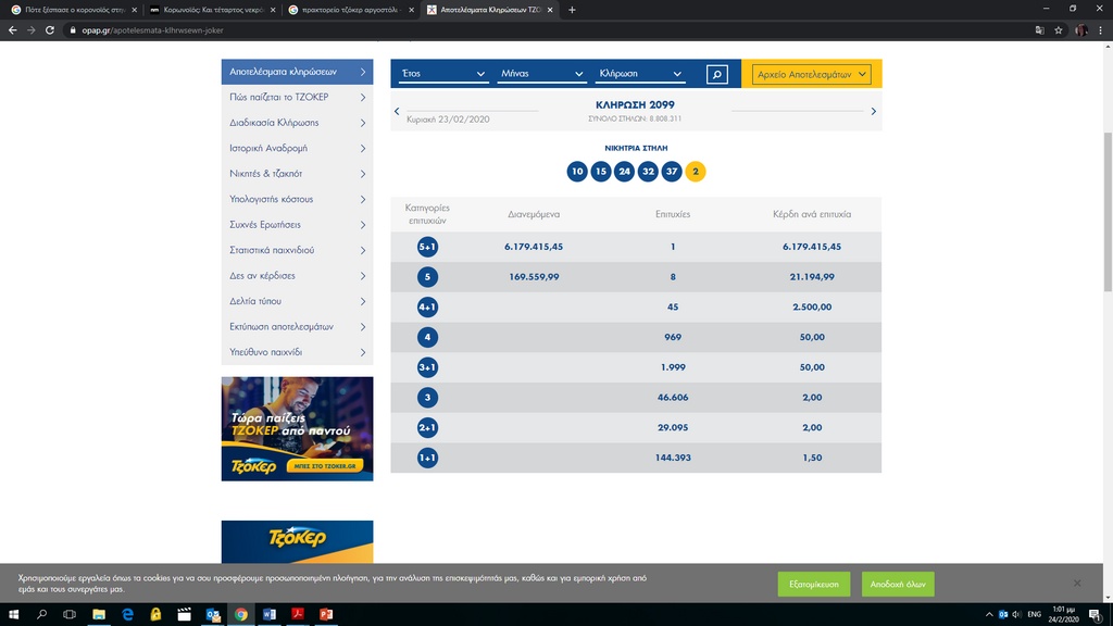 Ο τυχερός παίκτης, που πλέον είναι εκατομμυριούχος, ακόμη δεν έχει εμφανιστεί, σύμφωνα με τον κ. Πετράτο. Έπαιξε ένα δελτίο αξίας 15 ευρώ, ενώ η νικητήρια στήλη προήλθε από τυποποιημένο σύστημα.