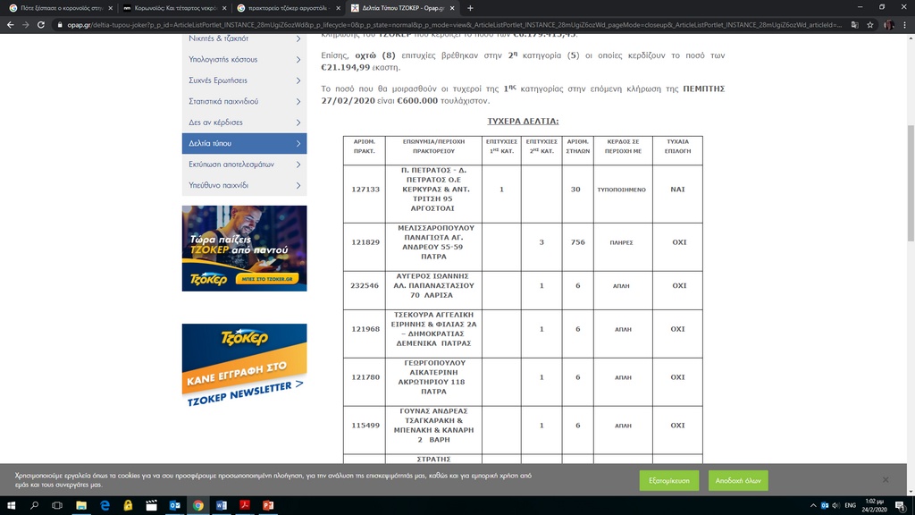 Τα νέα για τον μεγάλο νικητή του ΤΖΟΚΕΡ τα έμαθε σήμερα το πρωί. «Όταν πήγα για δουλειά δεν ήξερα τίποτε. Στο πρακτορείο βρίσκονταν ο πατέρας μου και ένα υπάλληλος, οι οποίοι λίγο νωρίτερα είχαν μπει στη σελίδα του ΟΠΑΠ και είδαν ότι το τυχερό δελτίο παίχθηκε στο κατάστημά μας», σημειώνει ο κ. Πετράτος.