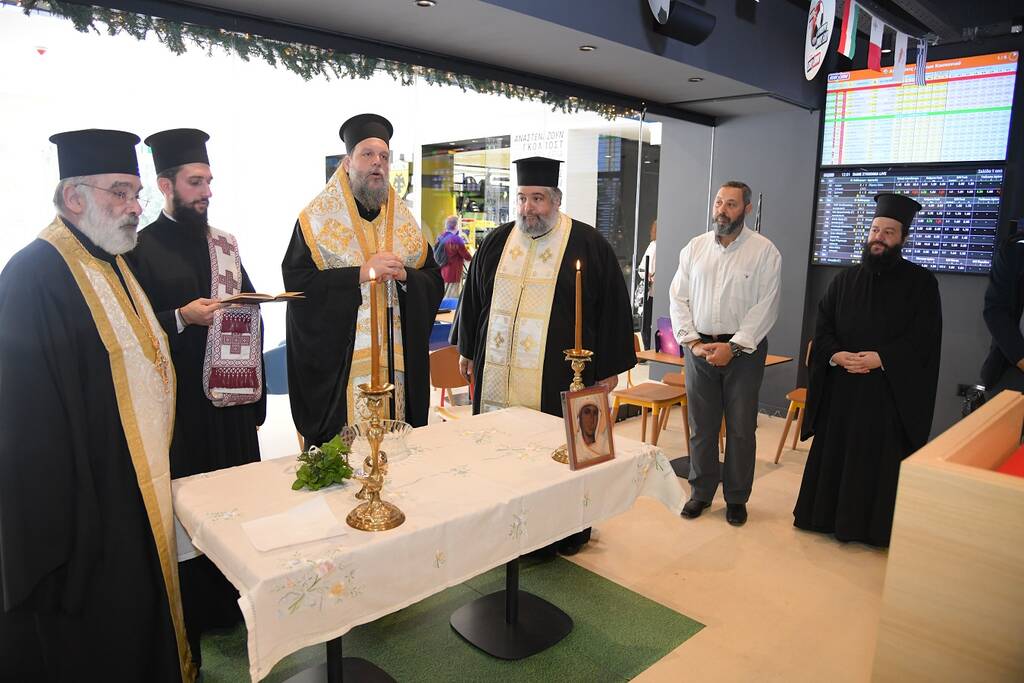 Τελέστηκε την Κυριακή στη Νέα Φιλαδέλφεια από τον Μητροπολίτη Ν. Ιωνίας Γαβριήλ ο αγιασμός του νέου πρακτορείου του ΟΠΑΠ στην OPAP ARENA.