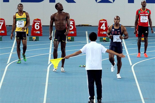 Αδίκως συντονίστηκε η μισή υφήλιος στις 28 Αυγούστου για να δει ένα νέο παγκόσμιο ρεκόρ. Πάνω στην φόρα του να κερδίσει και να κάνει τον καλύτερο δυνατό χρόνο, ο Μπολτ έφυγε κλάσματα του δευτερολέπτου πριν ακουστεί ο αφέτης και φυσικά ακυρώθηκε. Η στιγμή που αντιλήφθηκε τι είχε κάνει, ήταν… να τον λυπηθείς. Αμέσως έσκισε την φόρμα του απογοητευμένος και πικραμένος αποδεχόμενος την ποινή του και χωρίς καν να προσπαθήσει μέσω έντασης να αλλάξει κάτι. Ηταν πασιφανές ότι εκείνη η κούρσα ήταν… η τιμωρία του για την αλαζονεία του.