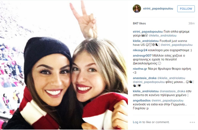 H σέξι τραγουδίστρια ήταν στο γήπεδο μαζί με τη φίλη της Κλέλια Ανδριολάτου και μόλις τελείωσε το παιχνίδι με τη Ντιναμό Ζάγκρεμπ πόσταρε στο instagram φωτογραφία στα... ερυθρόλευκα γράφοντας «γιατί απλά φέραμε γούρι».