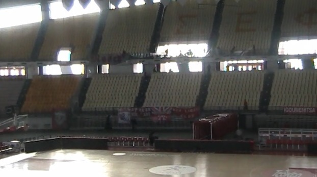 Απόλυτη ηρεμία επικρατεί αυτή τη στιγμή στο ΣΕΦ, αρκετή ώρα πριν από την έναρξη του μεγάλου ντέρμπι ανάμεσα στον Ολυμπιακό και τον Παναθηναϊκό.
