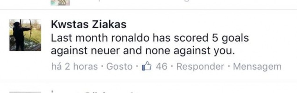 Η φωτογραφία που ανέβασε ο Αλμέιδα στο facebook προκάλεσε πάταγο και ο ίδιος ο παίκτης της «Ένωσης» ξεχώρισε ένα σχόλιο οπαδού και με αυτό αποφάσισε να... τρολάρει και τον τερματοφύλακα της Μπάγερν.