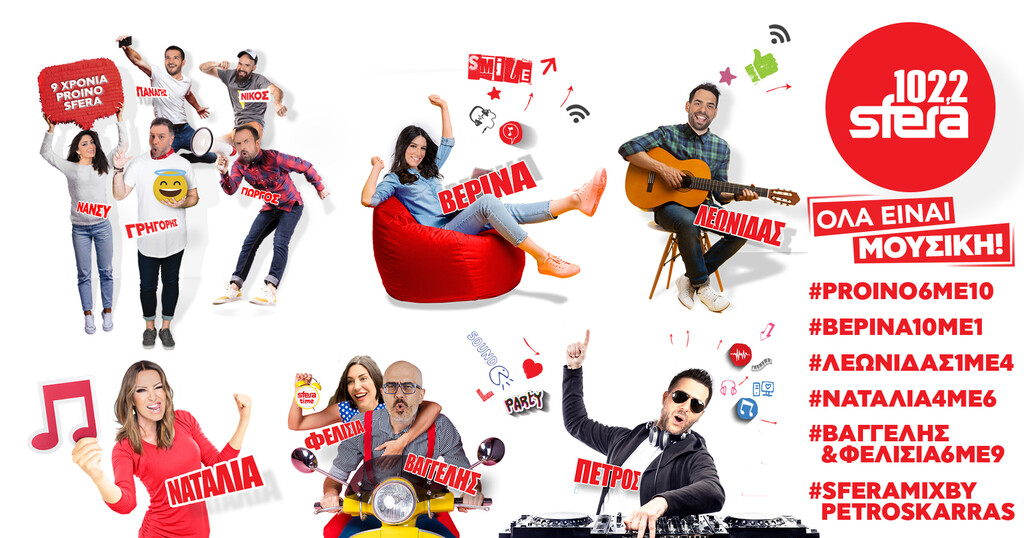 Οι πιο αγαπημένοι ραδιοφωνικοί παραγωγοί, οι πιο ανατρεπτικές εκπομπές, οι πιο απρόσμενοι διαγωνισμοί… όλα είναι μουσική, στον Sfera 102,2!