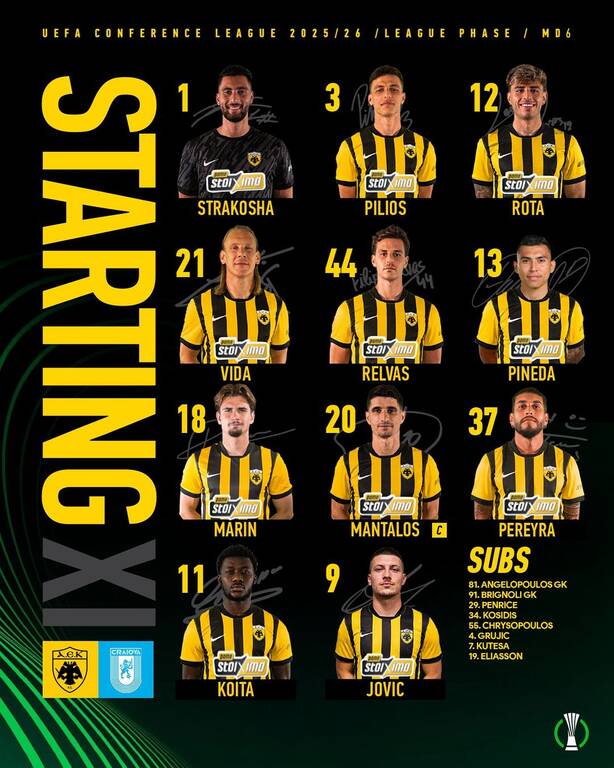 Δείτε τις επιλογές του Μάρκο Νίκολιτς για το ΑΕΚ – Κραϊόβα, για την 6η αγωνιστική της League Phase του Conference League.