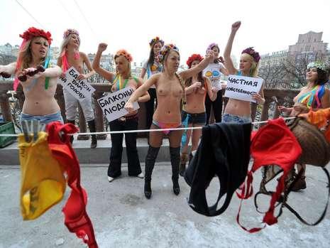 Οι γυναίκες της FEMEN στο άγγελμα της είδησης βγήκαν από τα… ρούχα τους, όπως θα διαπιστώσετε και από τις φωτογραφίες, έστω και αν η θερμοκρασία φλέρταρε με το απόλυτο ψύχος.