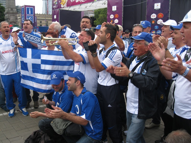 Οι Έλληνες, οι οποίοι είχαν ταξιδέψει από Αθήνα, Θεσσαλονίκη, Χανιά και Σόφια, τραγούδησαν συνθήματα και έβγαλαν αρκετές αναμνηστικές φωτογραφίες με Πολωνούς φιλάθλους. Τις επόμενες ώρες αναμένονται, επίσης, Έλληνες από Βέλγιο, Μόναχο, Ζυρίχη, Αυστραλία, Καναδά ακόμα και από την Ιαπωνία, ενώ στο γήπεδο θα είναι εφοδιασμένοι με τη μεγάλη σημαία που σηκώθηκε στο Ισραήλ, τρία τύμπανα και φυσικά την κορνέτα του Τάσου.