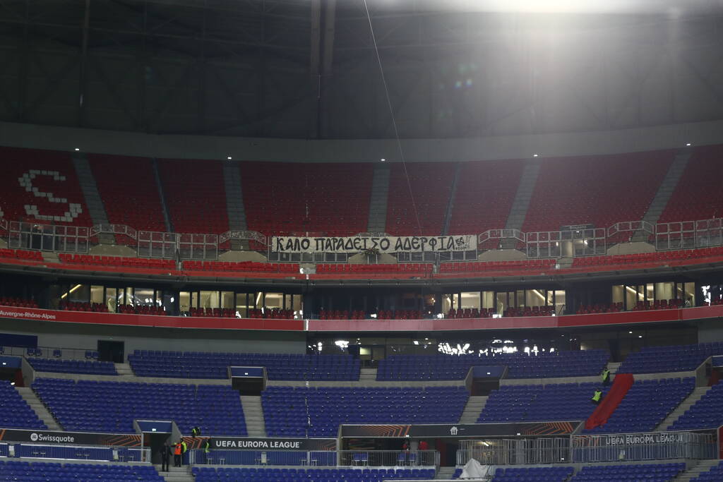«Καλό παράδεισο αδέρφια», ανέγραφε το μήνυμα στην κερκίδα που προοριζόταν για να φιλοξενήσει τους φίλους του ΠΑΟΚ.