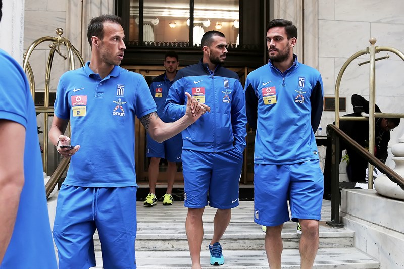 Οι ποδοσφαιριστές της Ελλάδας μετά το πολύωρο ταξίδι για τη Φιλαδέλφεια έκαναν βόλτα στους δρόμους της πόλης.