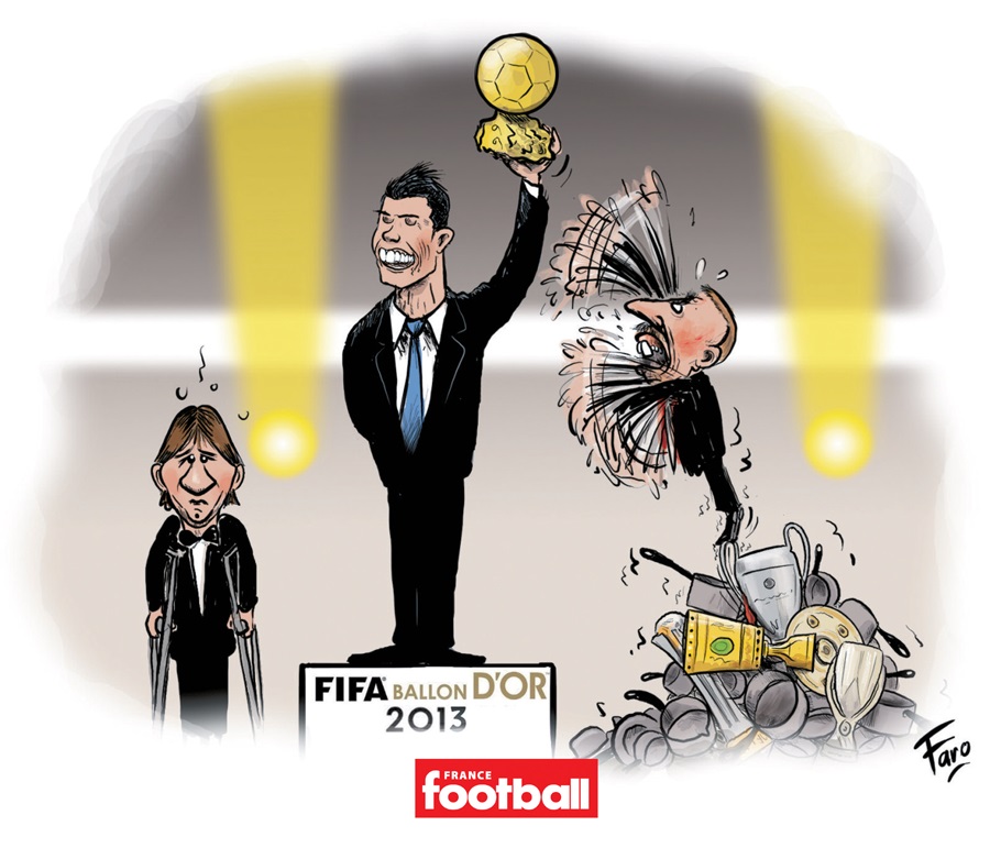 Αυτό είναι εύκολο να το καταλάβει κανείς. Αυτό που είναι δύσκολο να καταλάβει κάποιος είναι γιατί έχασε τη Χρυσή Μπάλα ο Ριμπερί, ο οποίος σήκωσε τα πάντα με την Μπάγερν Μονάχου τη στιγμή που ο Ρονάλντο δεν πανηγύρισε κανέναν τίτλο με τη Ρεάλ! Σύμφωνα πάντα με το σκίτσο...