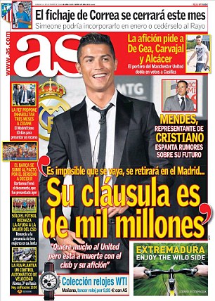 Όπως είπε ο Μέντες, ο Ρονάλντο είναι: «αφοσιωμένος στη Ρεάλ Μαδρίτης και τους οπαδούς της» και χαρακτήρισε τη μεταγραφή του πίσω στους «κόκκινους διαβόλους» ως κάτι αδύνατο.