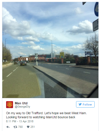 Άπειρο γέλιο προκάλεσε το tweet φιλάθλου της Μάντσεστερ Γιουνάιτεντ ο οποίος δήλωσε «πηγαίνοντας στο Ολντ Τράφορντ και ελπίζω να κερδίσουμε τη Γουέστ Χαμ». Σημείωση: Το ματς γίνεται στην έδρα της Γουέστ Χαμ!