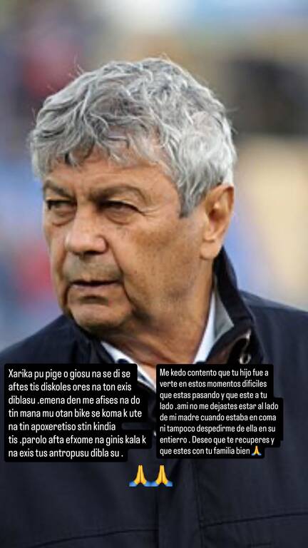Μέσα σε αυτό το κλίμα, ο Νέρι Καστίγιο, που είχε συνεργαστεί μαζί του στη Σαχτάρ μετά τη μεταγραφή του από τον Ολυμπιακό, δημοσίευσε μια φωτογραφία του Ρουμάνου τεχνικού, εκφράζοντας την ελπίδα να ξεπεράσει τη δύσκολη κατάσταση, ενώ στάθηκε και στην παρουσία του γιου του στο πλευρό του.