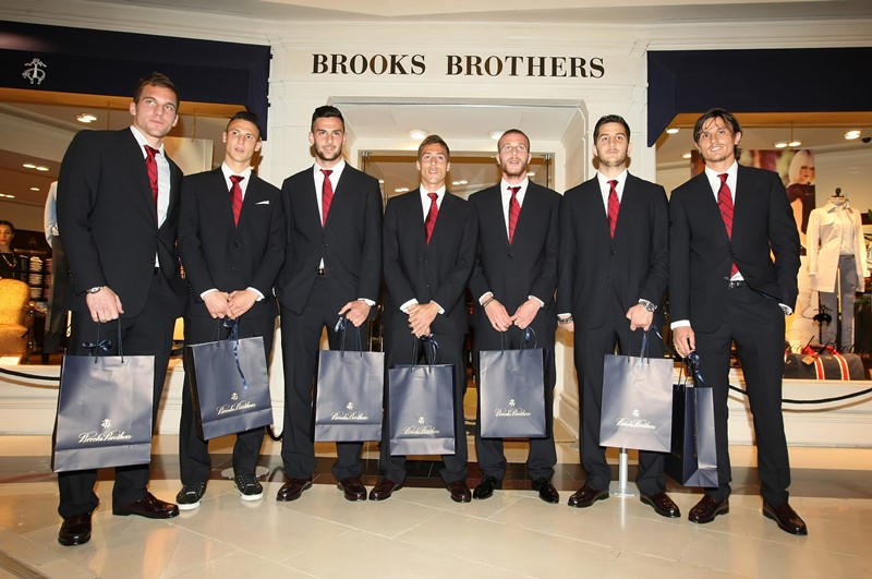 Οι παίκτες του Ολυμπιακού πρόβαραν τα νέα τους κοστούμια από την εταιρεία, και συνέχεια, πήραν δώρα, φωτογραφήθηκαν και αποχώρησαν, ενώ ο Μίτσελ δέχθηκε από την Brooks Brothers δώρο μια κάρτα για αγορές.