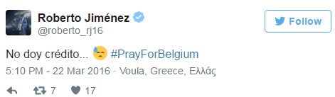 Ο Ισπανός έστειλε το δικό του μήνυμα έπειτα από τις τρομοκρατικές επιθέσεις στο Βέλγιο που είχαν θλιβερό απολογισμό με δεκάδες νεκρούς.