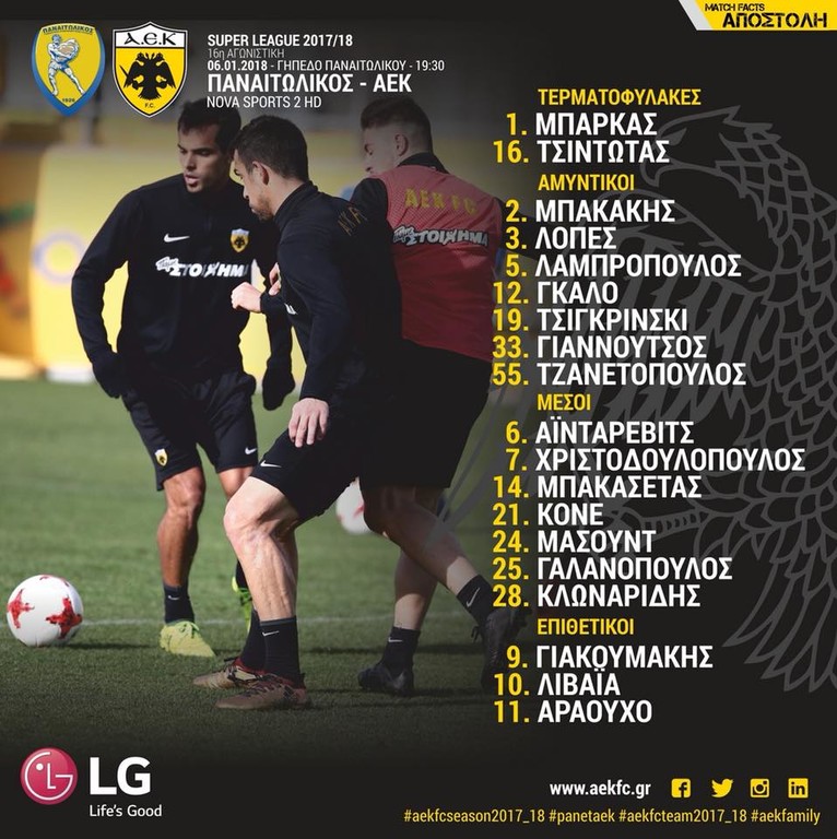 Αντίθετα στο Αγρίνιο δε θα ταξιδέψει ο Μοράν που κρίθηκε ανέτοιμος από τον Μανόλο Χιμένεθ. Εκτος πλάνων τέθηκαν επίσης οι Ούρος Τσόσιτς και Αντρές Σιμόες, αλλά και ο Όγκνιεν Βράνιες που ακόμα δεν έχει φτάσει στο 100%. Σε ό,τι αφορά τον Ιρανό αναμένεται να κάνει ντεμπούτο προερχόμενος από τον πάγκο.