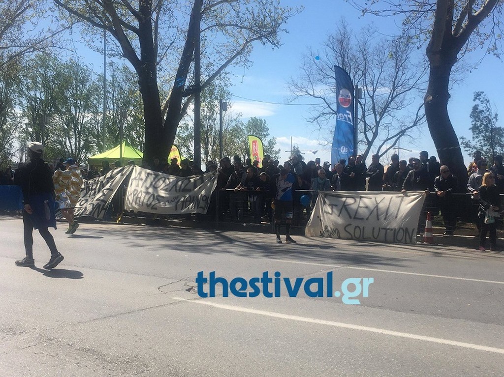 Διαμαρτυρία σε έντονο ύφος από τους οπαδούς του ΠΑΟΚ στο περιθώριο του 13ου Διεθνούς Μαραθωνίου «Μέγας Αλέξανδρος»