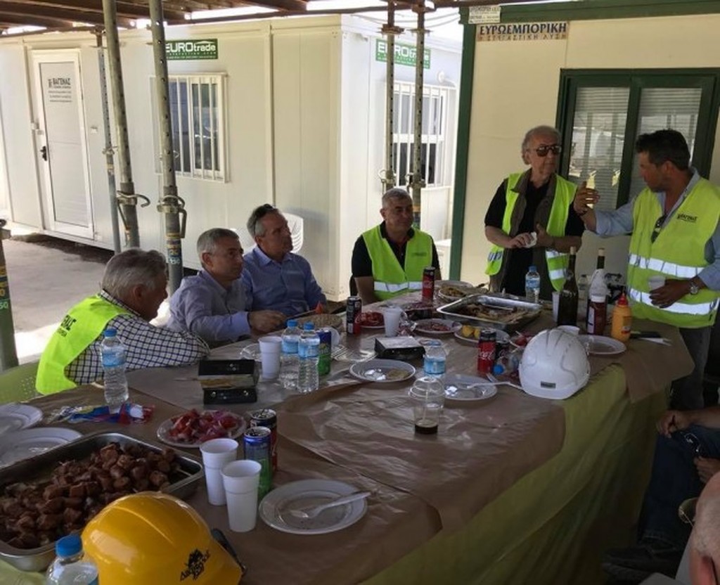 Οι άνθρωποι που εργάζονται για την κατασκευή του νέου γηπέδου της ΑΕΚ έστησαν ένα ξεχωριστό τραπέζι στη Νέα Φιλαδέλφεια.