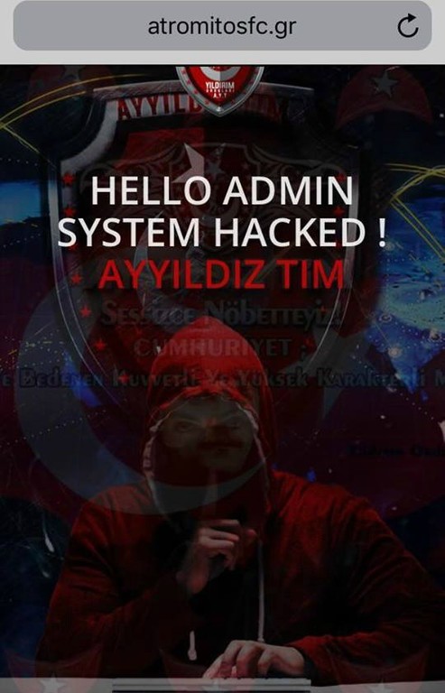 Στόχος Τούρκου χάκερ έπεσε το βράδυ της Τρίτης (9/10) η ιστοσελίδα της ΠΑΕ Ατρόμητος. Οι φίλοι των Περιστεριωτών δεν μπορούσαν να μπουν στο επίσημο σάιτ της ομάδας. Κι αυτό γιατί ο χάκερ με το όνομα Ayyildiz Tim, έριξε την ιστοσελίδα.
