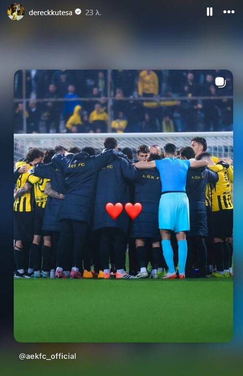 Τη φωτογραφία με όλη την ομάδα αγκαλιασμένη «ανέβασε» κι ο Ντέρεκ Κουτέσα, ενώ κάτι ανάλογο έκανε κι ο Αρόλντ Μουκουντί, ο οποίος απουσίασε από τον Βόλο, καθώς ήταν τιμωρημένος.