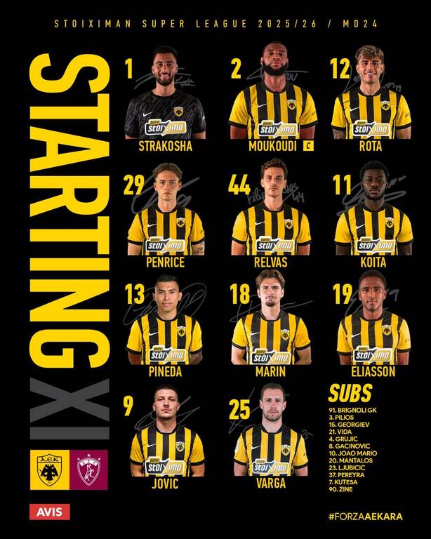 Δείτε τις επιλογές του Μάρκο Νίκολιτς για την ενδεκάδα του αγώνα ΑΕΚ – ΑΕΛ.