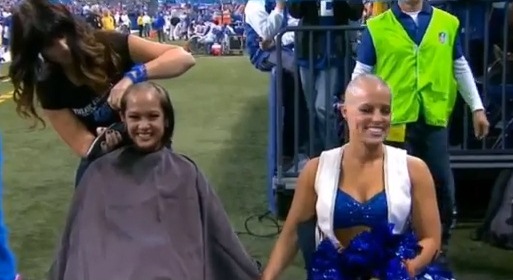 Η Megan M., τσιρίντερ των Ιντιανάπολις Κολτς, κέρδισε το στοίχημα που είχε βάλει και ξύρισε, μπροστά σε όλο τον κόσμο, το κεφάλι της.