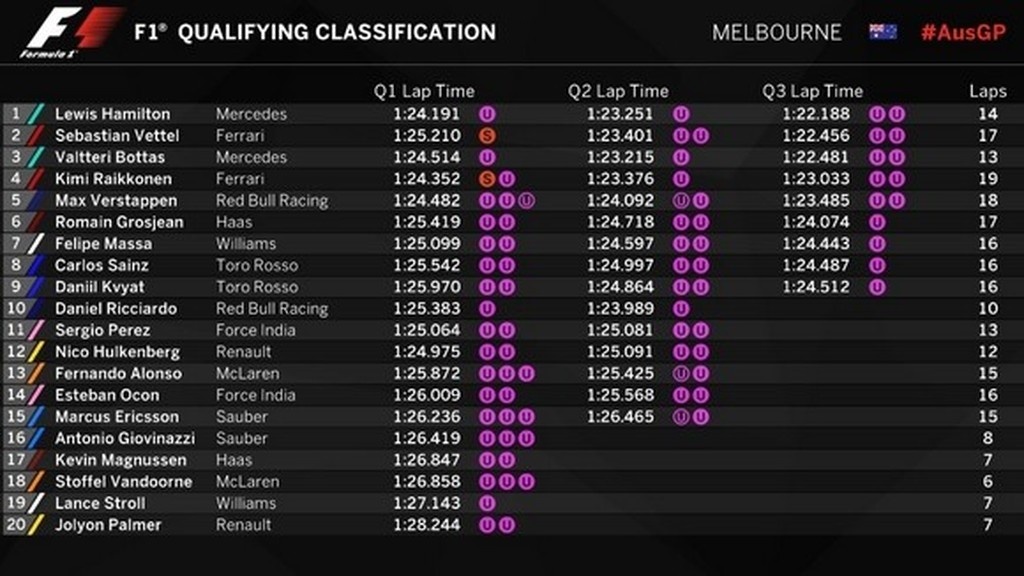 Στον Λιούις Χάμιλτον πήγε η pole position στις κατατακτήριες της Αυστραλίας, με τον Φέτελ να τερματίζει δεύτερος και τον Μπότας να ακολουθεί.
