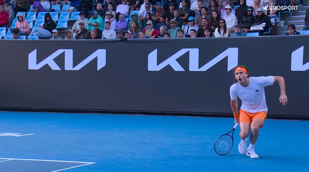 Ο κορυφαίος Έλληνας τενίστας, Νο31 στην παγκόσμια κατάταξη, μόλις είχε χάσει το τρίτο σετ (1-2) και ήταν σε δύσκολη θέση στην αρχή του τέταρτου, καθώς αντίπαλός του είχε κάνει break και σέρβιρε για το 2-0.